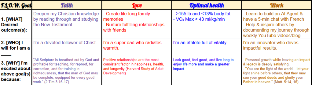 By defining goals in these four areas, you’ll avoid the pitfall of focusing on just one part of life and neglecting the rest.